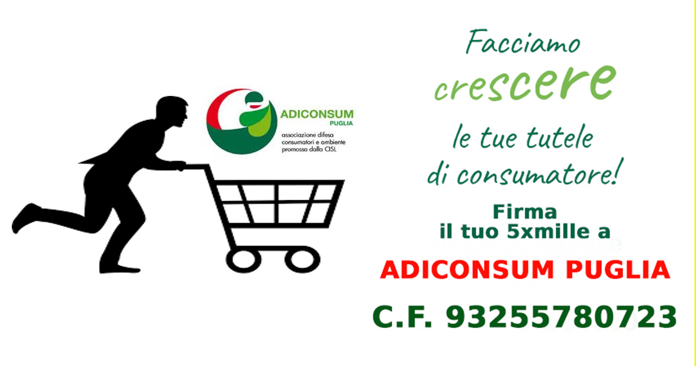 at 1414 × 744 in Locandina 5 x 1000 Adiconsum Puglia.
